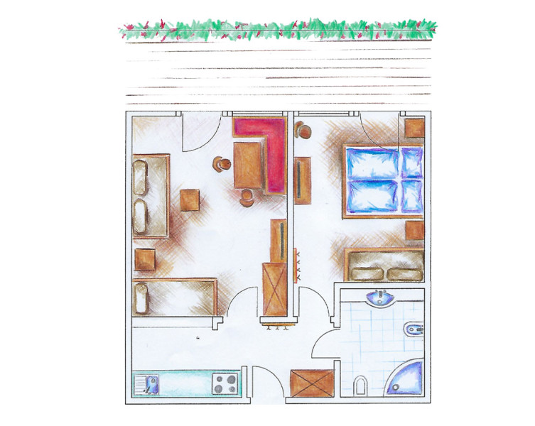 Rezidence nabízí ubytování v apartmánech pro 2-6 osob, které jsou vybaveny typickým dřevěným nábytkem. Hostům je k dispozici prostorná zahrada, společenské prostory a vyhřívaná lyžárna.