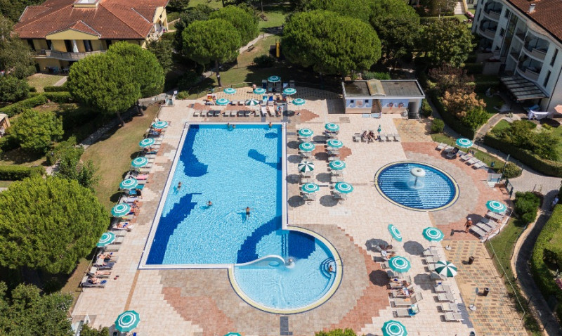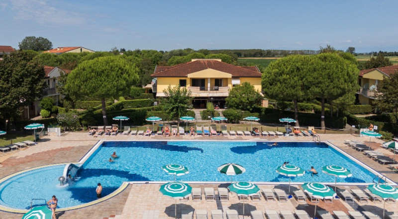 Rozlehlé propojené komplexy s bazény v klidné části, vzdálené cca 500-800 m od pláže a 5 km od historického centra Caorle. Vhodné pro rodiny s dětmi.