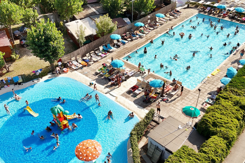 Camping s bazénem v přímořské části Lido di Dante, jen 200 m od přírodní písečné pláže.