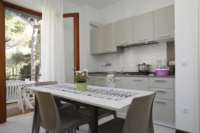 Vila obklopená zelení se nachází na klidném místě, avšak nedaleko potřebných služeb. Centrum letoviska s různými obchůdky, bary a restauracemi je vzdáleno cca 700 m. V Lignano Pinesta se nachází Parco Hemingway, jedná se o překrásný rozlehlý park se vzrostlými stromy, kterým vedou cyklostezky a pro děti jsou zde hřiště, aby si mohly bezpečně hrát.
