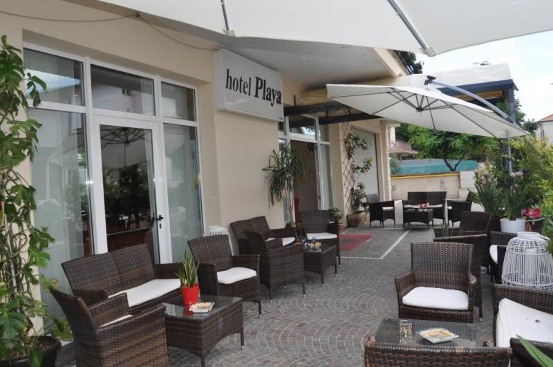 Pro pobřeží Rimini je typická velmi široká a dlouhá pláž se zlatavým jemným pískem a přilehlou promenádou. Pláž je vhodná pro rodiny s malými dětmi, jelikož má pozvolný vstup do vody. Hotel leží cca 80 m od hotelové pláže s plážovým servisem od 4. řady v ceně (slunečník + 2 lehátka/pokoj). Vodní sporty na pláži za poplatek.